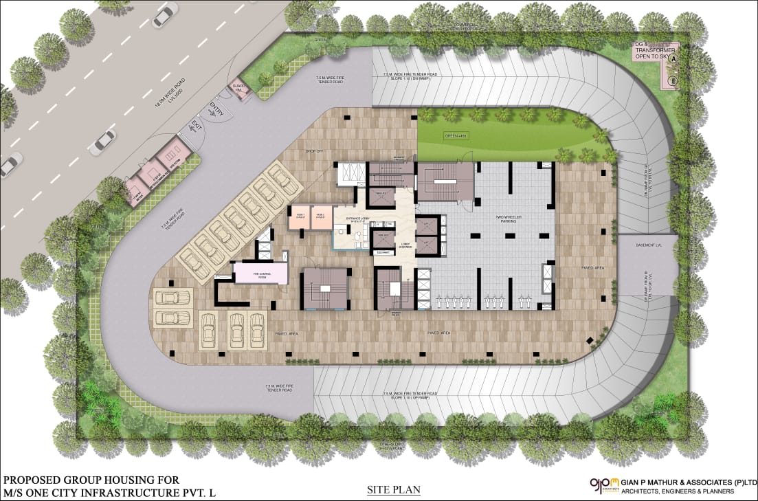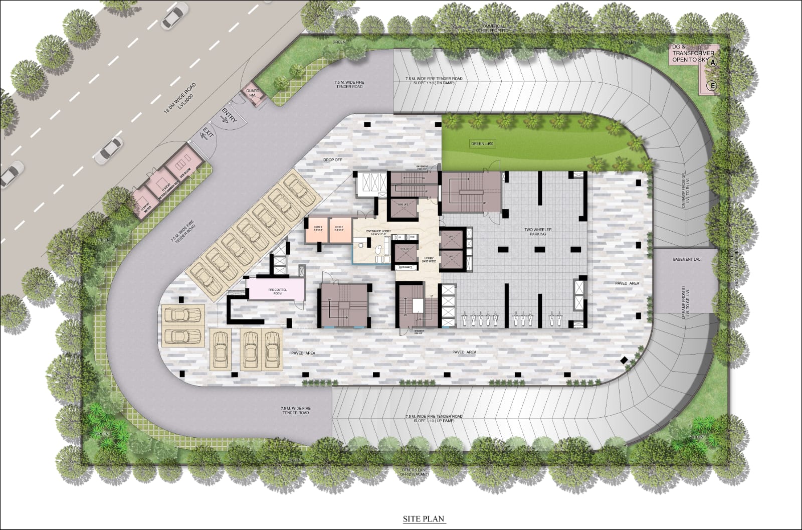 • Modern Elevation with a blend of Stone, Metal, Glass & Designer Paint – as per Architectural Theme